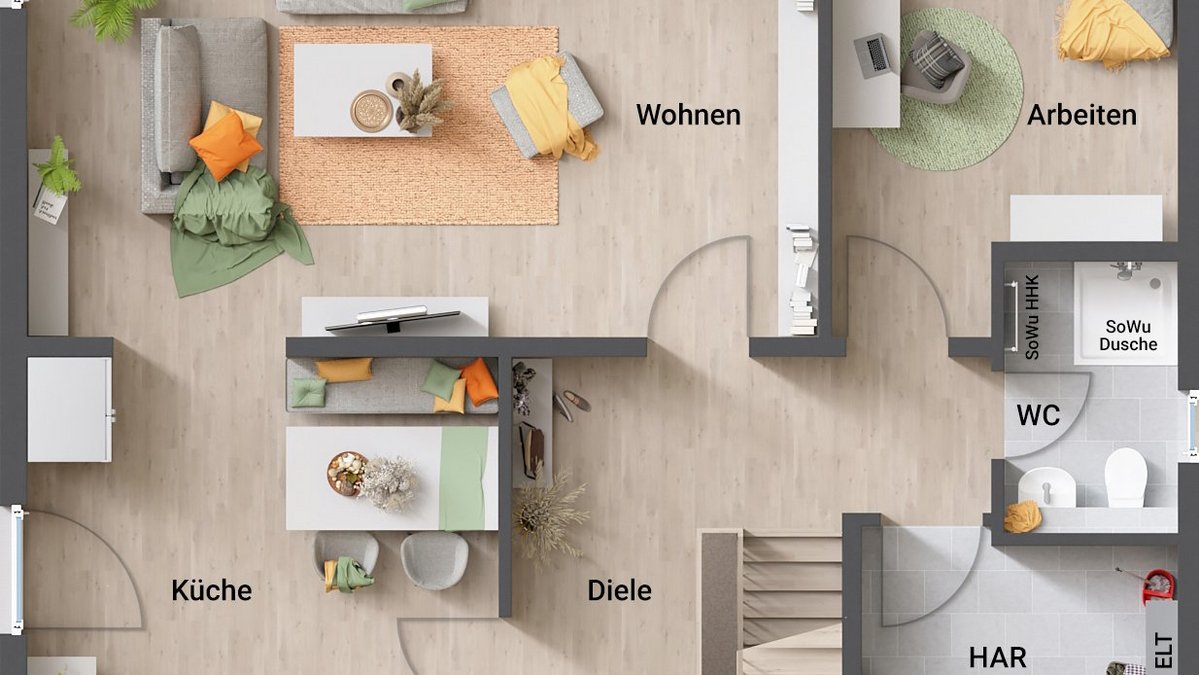 Viele Bauherren unterschätzen, wie viel Stauraum im Laufe der Zeit benötigt wird. Haushaltsgeräte, Vorräte, Kleidung oder Putzutensilien nehmen häufig mehr Platz ein als gedacht - besonders dann, wenn beim Hausbau auf einen Keller oder einen Dachboden verzichtet wird. Um einen späteren Platzmangel zu vermeiden, sollte bereits bei der Grundrissplanung ausreichend Stauraum berücksichtigt werden. Sinnvolle Lösungen sind beispielsweise deckenhohe Einbauschränke im Flur, ein Hauswirtschaftsraum oder eine Speisekammer.
